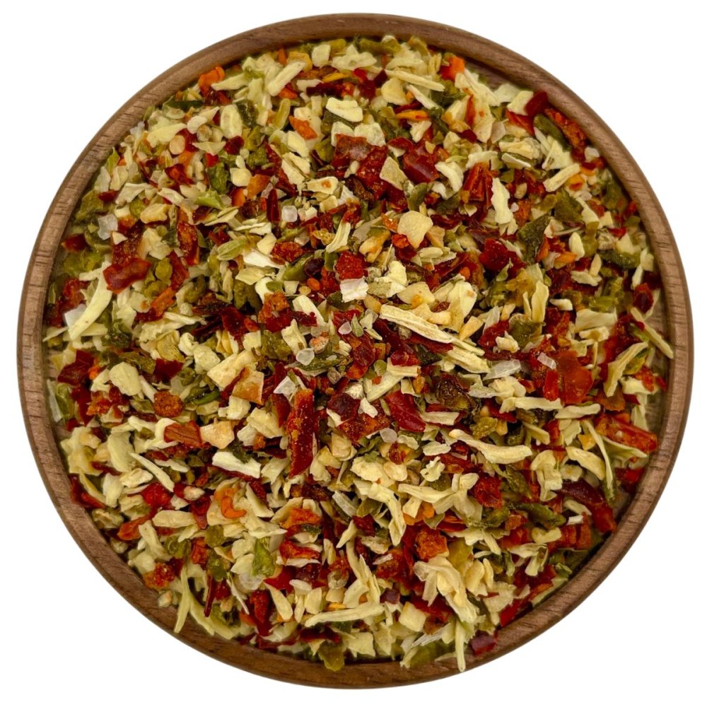 🧄 Složení: paprika drcená (červená a zelená), cibule, česnek, bílý pepř, oregano, sůl max. 10 %