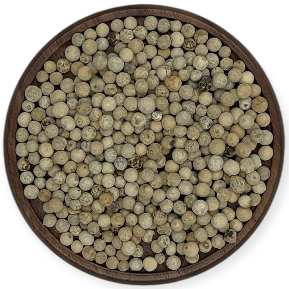 Bílý pepř je chuťově jemnější než černý, ale stále výrazný. Hodí se tam, kde nechceš tmavá zrníčka v pokrmu – tedy do světlých omáček, polévek, rybích jídel nebo paštik. Má elegantní, mírně nasládlou chuť a specifickou vůni, která si najde cestu do moderní i klasické kuchyně.
